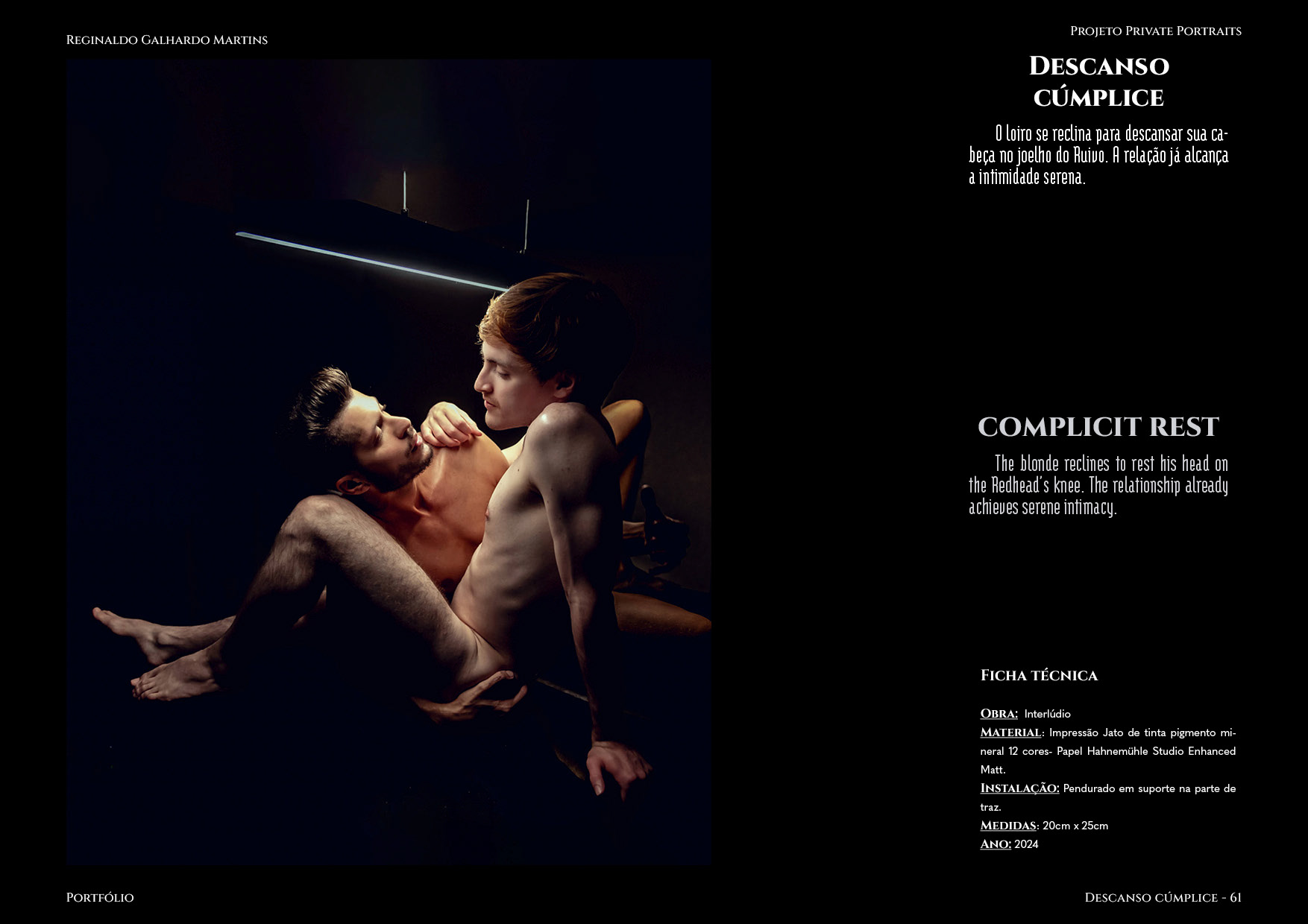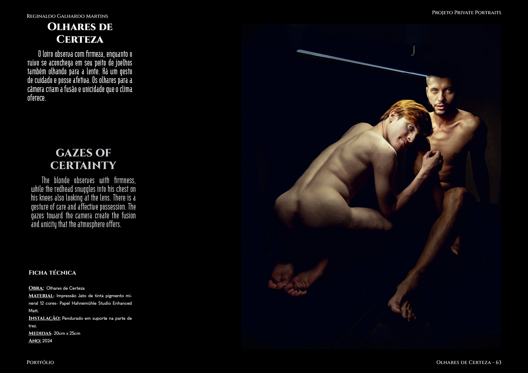 A série O Loiro e o Ruivo tem o objetivo de apresentar um ensaio que explora a construção do desejo e da intimidade através de um jogo preciso entre luz e sombra. Utilizando a técnica do low key, objetivo conferir dramaticidade aos corpos, destacando a escultura da pele e a intensidade dos gestos.